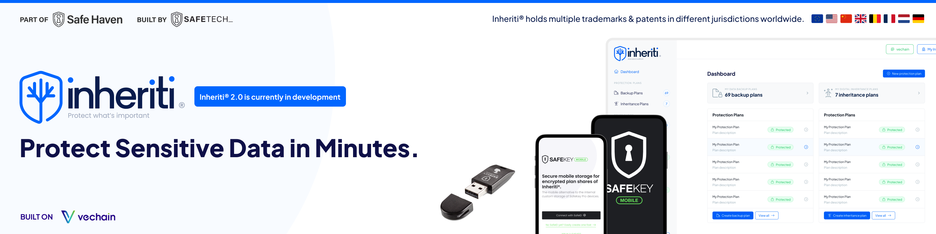 4. **Decentralized Backup Storage**: In addition to your SafeKey, Inheriti® creates backup shares which are stored on multiple storage layers such as the blockchain and cloud.