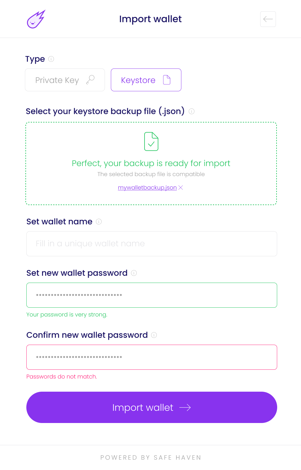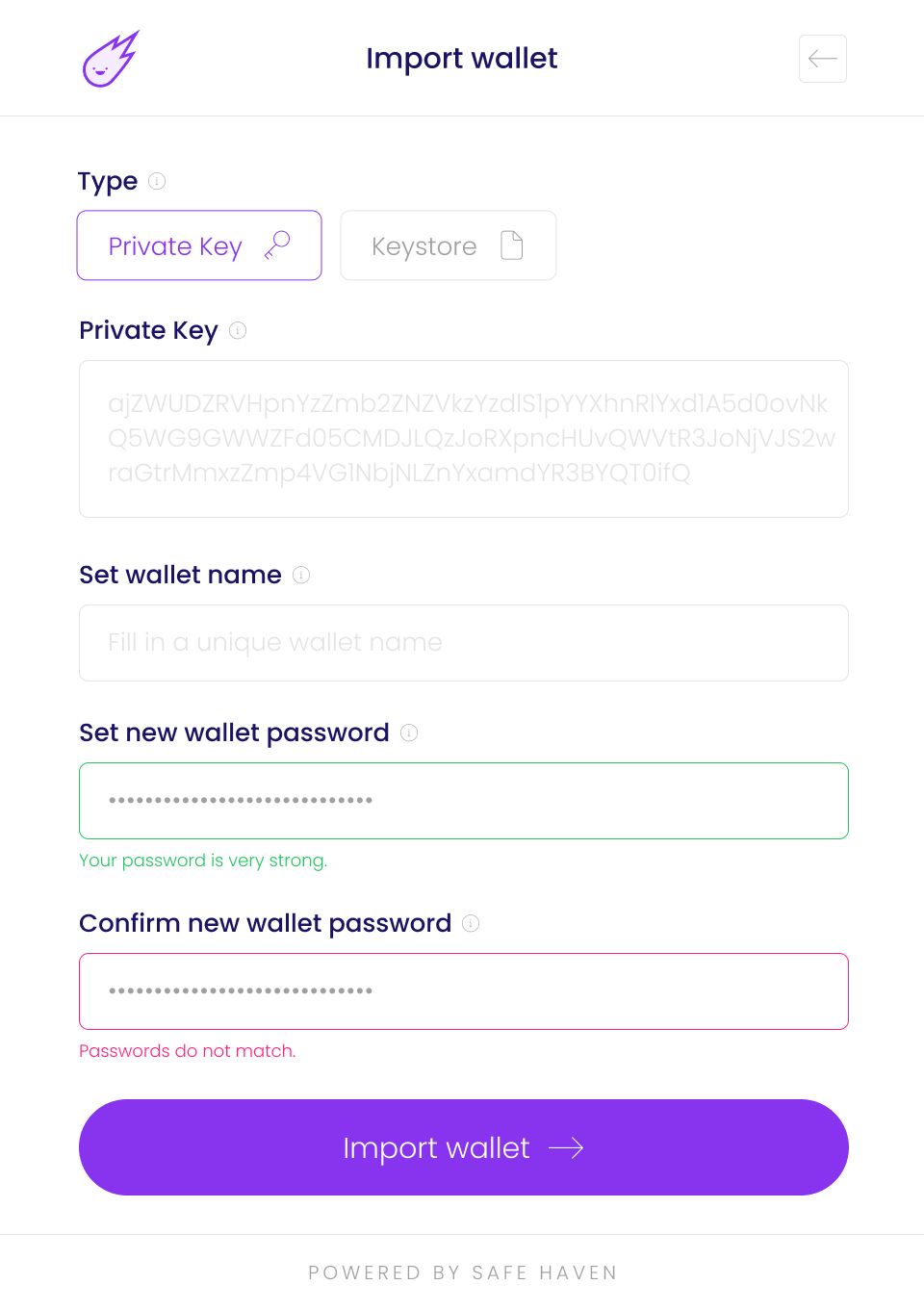 5. Once you have entered the necessary details, click on the "Import wallet" button.