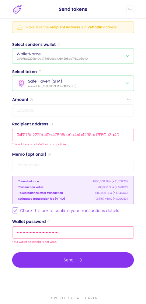 Make sure the recipient's address is compatible with the blockchain you're using. Sending tokens to an incompatible address may result in lost funds.
